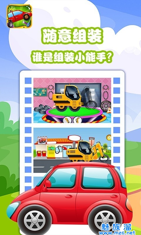1、宝宝拼装小汽车的卡通画风让整个的游戏都是很可爱的,适合孩子,很不错的益智游戏。