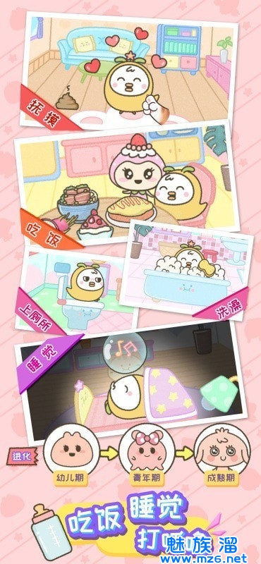 3.各种萌宠会根据主人的喂养习惯,最终不断成长,成长为不同形态。