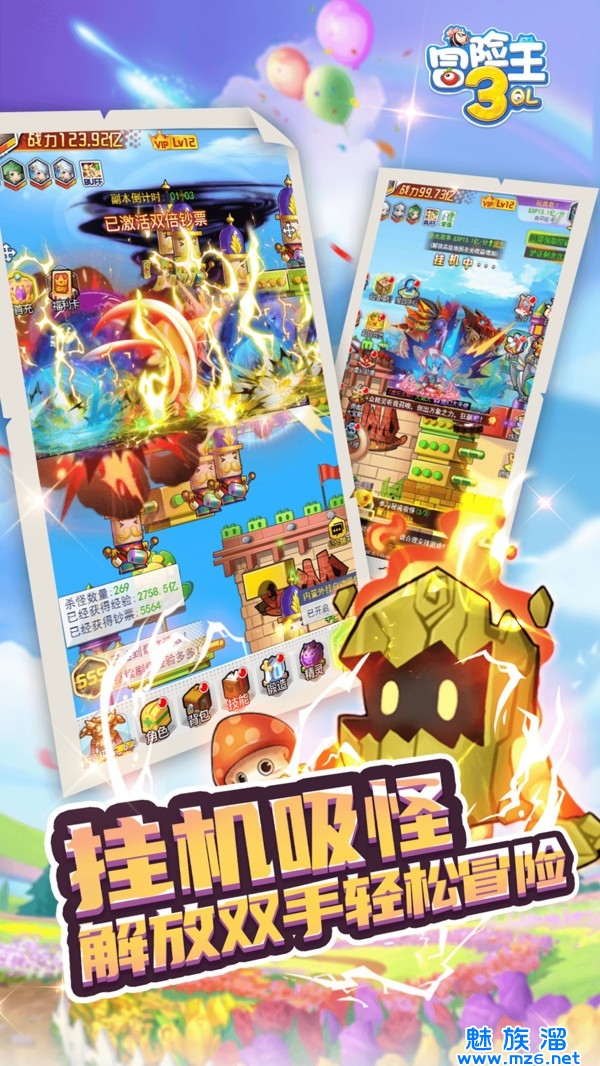 冒险王3ol华为版是一款玩起来非常过瘾的角色扮演类手游,游戏继承了冒险王2的经典玩法和美术风格,并且完美还原了挂机打怪的经典玩法,带给玩家极致的游戏体验。在这里有着各式各样的时装可以自由的搭配,还有着丰富的装备、技能库等待玩家的体验,喜欢的玩家快来下载冒险王3ol华为版开始游玩吧!