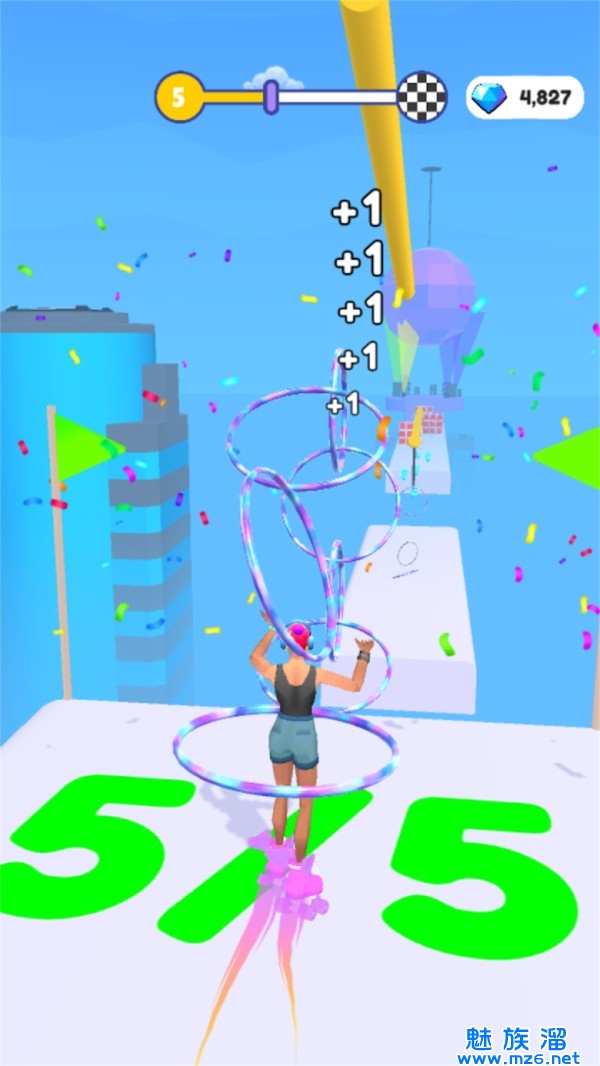 2、玩家收集的呼啦圈越多,那么到达终点就可以获得更多的积分,玩起来非常有趣;