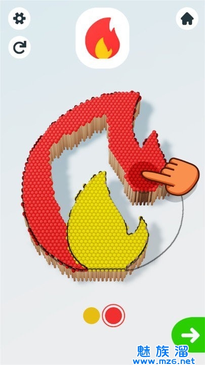 1、火柴艺术会给玩家提供大量的小火柴,不同的顶部颜色,你可以用它们去随意的搭建。