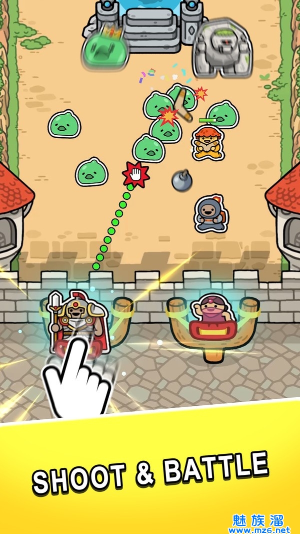 3、这款游戏的玩法很简单,玩家只需要拉动大弹弓将士兵发射出去即可。