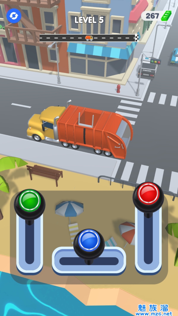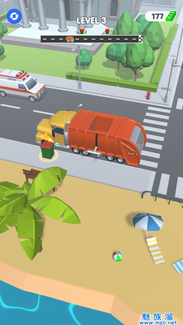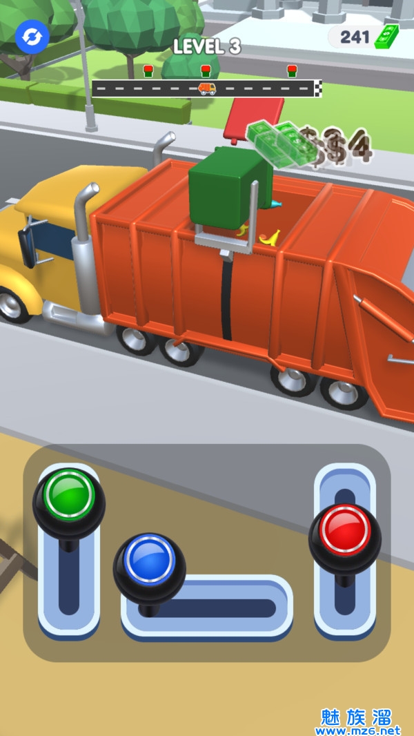 2.游戏中通过完成关卡和清洁您的城市来解锁高级垃圾车,可以获得更多的奖励。