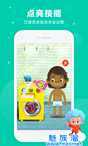 让小朋友们通过游戏七个不同的生活场景,在这里学习自己穿衣服打扮,洗脸刷牙洗澡