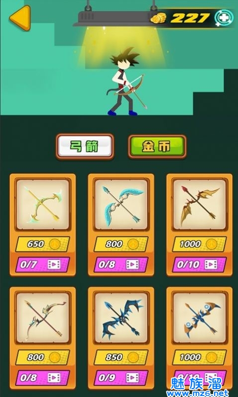 2、得到的金币能够去解锁新的皮肤或者是更好的弓箭兵器哦,更有益于杀灭强的boss。