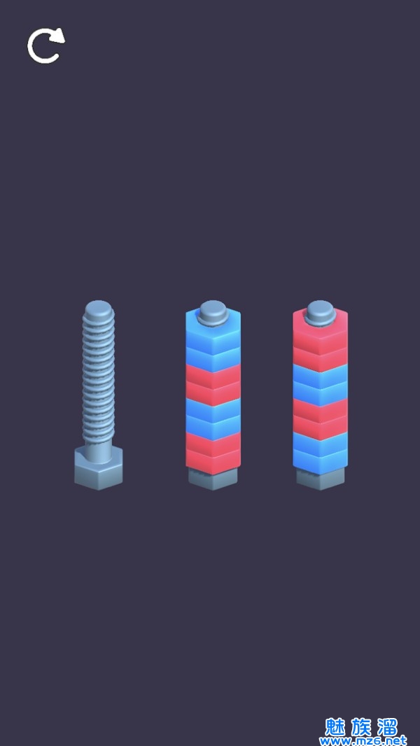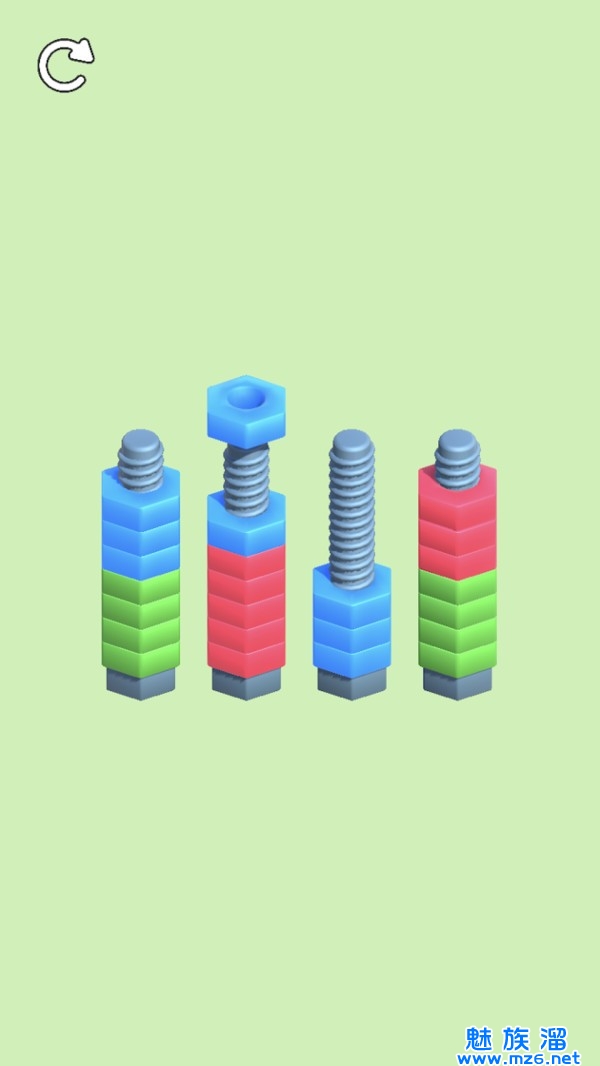 2、根据颜色的搭配,将关卡中相同颜色的螺母移动到同一个螺母上,就可以完成挑战了。