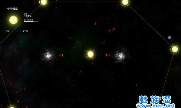 2、小型行星–>小型恒星:把它移动到小行星附近,让小行星绕着它转,然后点一下它,小行星被吸掉
