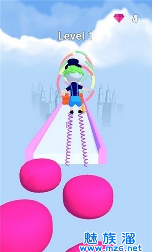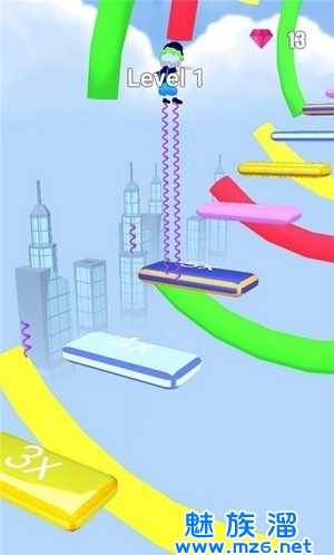 2、收集更多弹簧,将会在跑酷的时候给你很多帮助,但是要注意绕开危险哦。