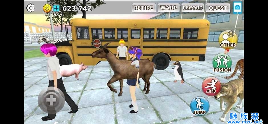1.动物校园模拟器游戏角色玩法多样,可以自由移动、开车、和动物战斗或者合作。