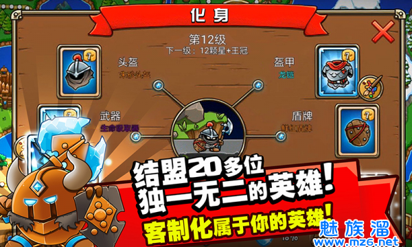 1,结合故事和塔防在一个策略游戏,不是一个单一的战斗布局,有更多的故事等待你的体验,发展各种防御塔和兵种,建设防线。