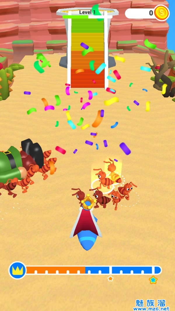 蚂蚁女皇是一款趣味十足的休闲益智类手机游戏,游戏玩法新颖,玩家将扮演蚂蚁女皇进行冒险,在这里你将进行简单的跑酷闯关,地图中有着超多的障碍物需要你避开,你还可以召集更多的蚂蚁加入你的队伍,他们能够增强你的实力,让你在面对危险时也能从容面对,喜欢的玩家快来下载蚂蚁女皇吧!