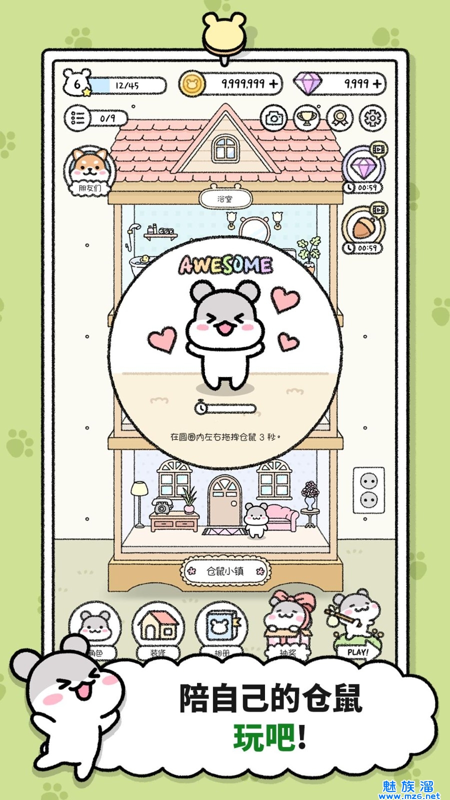 同时还有着各种各样道具,每一只仓鼠都有着自己的性格,不断地扩建你的仓鼠屋,