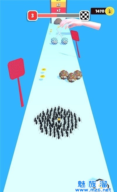 2、在游戏中收集更多食物,让蚁群的实力不断的提升,扩大自己队伍的规模,当你抵达终点之后,能够为玩家带来更丰厚的奖励;