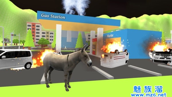 1.玩家控制一头驴进行各种破坏体验。逼真的场景设定带来震撼的视觉效果,3D建模特别真实;