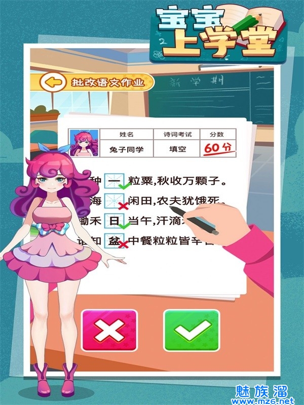 玩家可自选课程进入,有语文课,美甲课,社会关系课等新型课程,玩家可对应版块内容答题或动手完成指定目标即可。