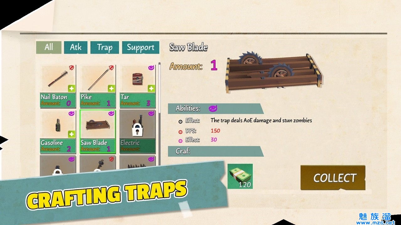 2、收集大量材料制作陷阱,设置陷阱阻止僵尸,为保卫您的城市并探索新领域而战;
