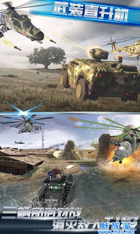 3.在陆地上和天空上对敌人进行毁灭性的打击,享受惊心动魄的战斗场景。