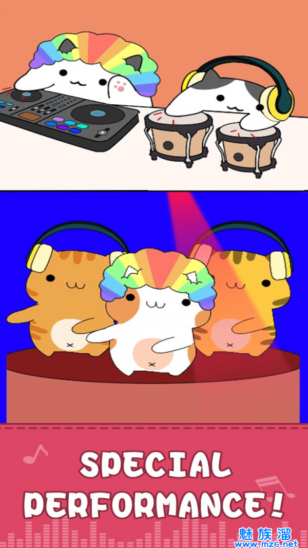 2.超可爱的演奏动作,萌化每一位玩家的心,体验一场最过瘾的节奏游戏;