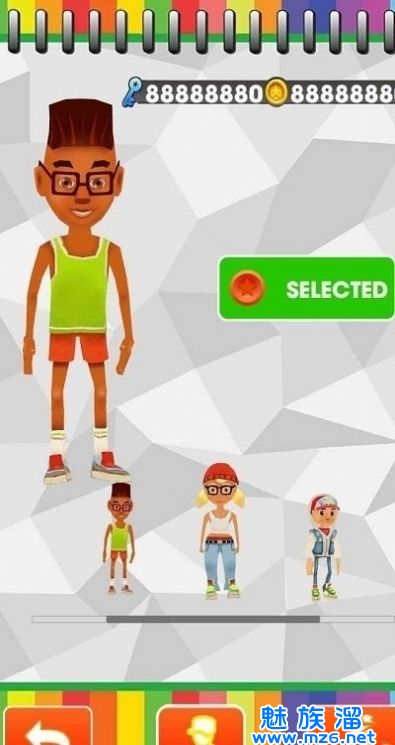 地铁冲浪运动员游戏的玩法和地铁跑酷是一样的哦,操控游戏中的主角进行闯关,在闯关的时候会遇到各种各样的障碍,灵活的控制小人的行动,同时你还要收集关卡内的道具和金币,不同的道具供你是不一样的,有些道具还可以加快你的速度哦,让你跑起来更快哦。