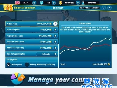 3.像真正的大亨一样管理您的航空公司,成为航空业最伟大的 CEO。 玩家将在游戏中成为航空公司的老板通过关卡。