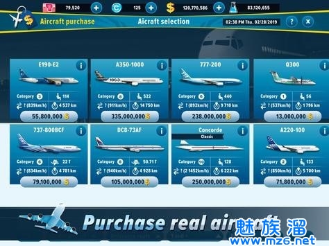 2.飞机种类繁多,您可以选择来自世界各地的顶级客机。 您可以为自己的航空公司购买客机。
