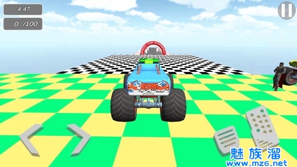 2、在高空赛道中不断的冲刺加速,你需要控制车辆的平稳,飞跃更远的距离到达终点;
