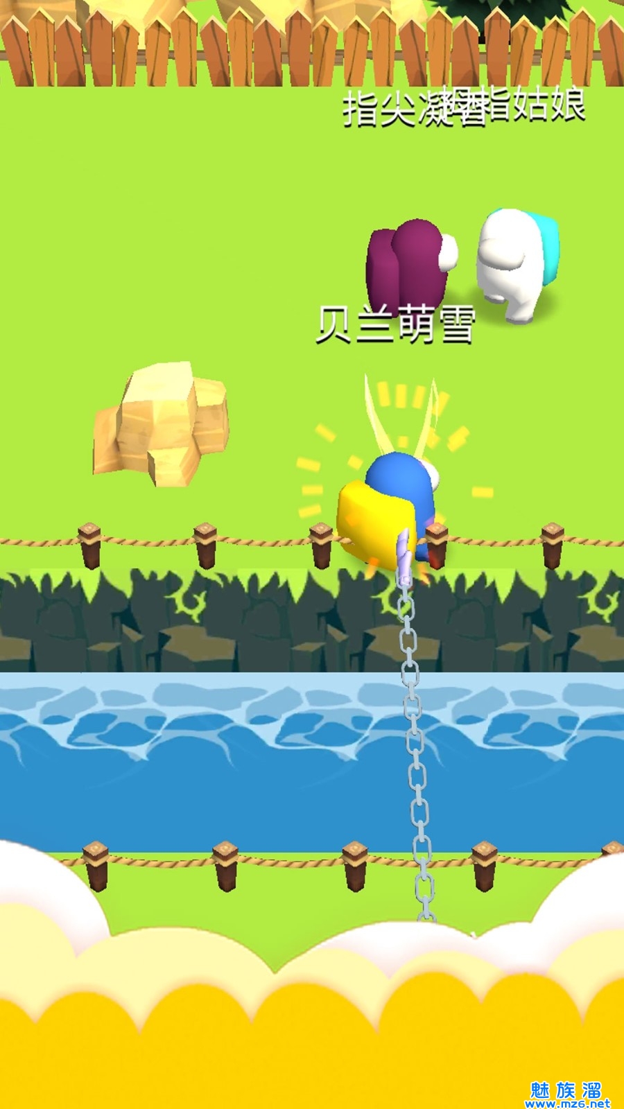 魔法部落战是一款玩起来非常过瘾的休闲动作类手机游戏,游戏采用了卡通的画风,画面看上去细腻精致、趣味十足,在这里玩家将扮演小人进行对决,你与对手之间将间隔一条河,使用钩子拉走对面并消灭,在时间结束之前击杀的人数更多就可以获胜,感兴趣的玩家快来下载魔法部落战开启你的趣味战争吧!