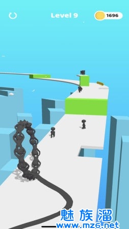 4、将面临一个个不同形状的赛道,玩家变换自己的轮胎来度过一个又一个障碍物。
