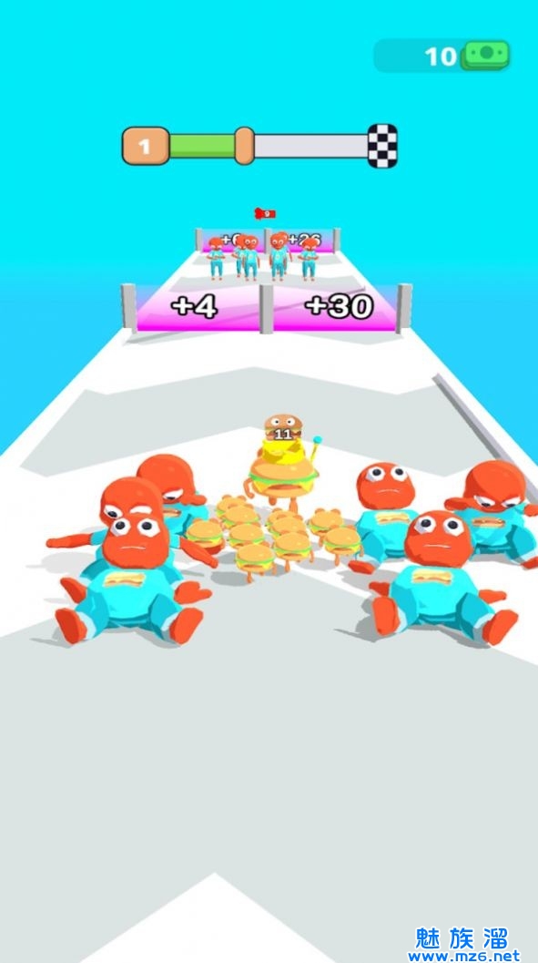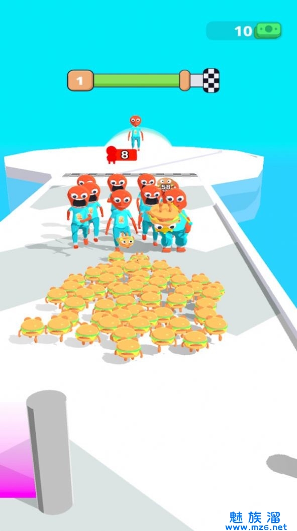 1、在游戏中玩家需要收集更多汉堡同伴躲避想吃汉堡的人类顺利的到达终点;