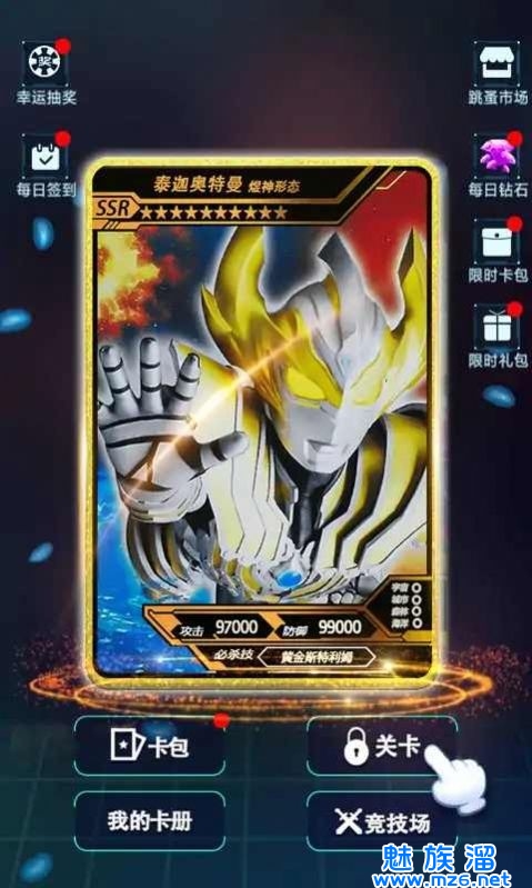 宇宙英雄卡片对战游戏是一款奥特曼题材的卡牌策略对战游戏。在游戏中玩家你将开启你的英雄对决了,为了战胜对手,你游戏的时候要注意去搭配好自己的阵容组合,这个搭配的更好后玩家你才能在后续的战斗中将出现的怪兽给击败,而玩家你也能轻松的完成后续的挑战了。喜欢的玩家快来试试吧。