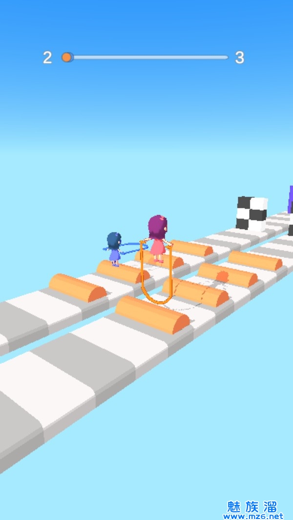 1、十分清爽的画面,运用3D物理引擎打造,结合有趣的IO竞技元素,经典的跳绳玩法;