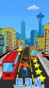 1、开始你的冲浪在地铁使用滑动转弯,跳跃和滑动,以避免障碍,障碍,公共汽车,出租车,和地铁警察。