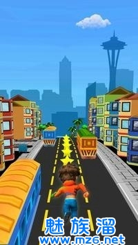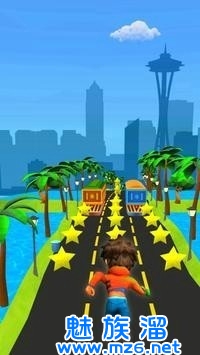 2、触摸屏幕运行在这个无尽的跑步游戏。你可以扮成金、科勒、肯德尔或其他角色在街上奔跑,登上地铁里速度快的几块3板