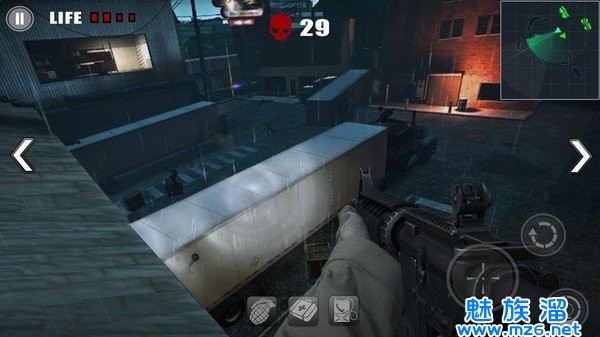 1、超大的地图,各种真实环境模拟,你可以一边射击僵尸一边欣赏沿途风景;