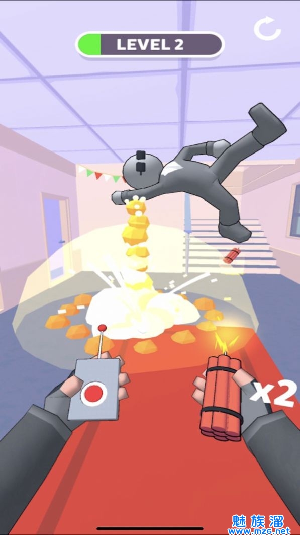 1、玩法十分的简单有趣,你只需要控制你的角色进行一系列的炸毁行动。
