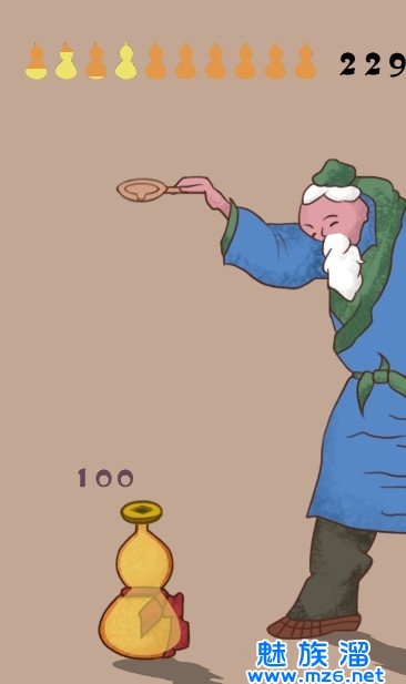 玩家点击屏幕开始倒油,根据倒入葫芦里的油的数量得分。