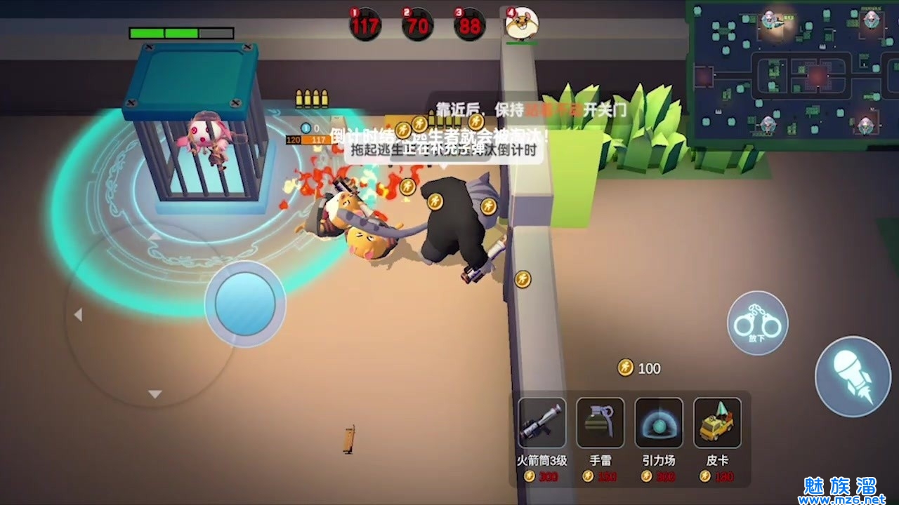 在战斗中击杀对方的可以在最后游戏机结束的时候获得大龄的金币并且累积一定的分数。