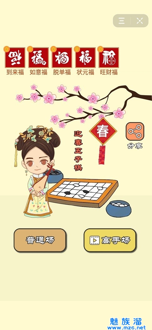 大家一定在上学的时候和同学玩过五子棋吧,画在纸上一定很繁琐,那么迎春五子棋安卓版这款游戏可以让你们在手机方便游戏的同时还能够享受动画古风制作的新春新鲜感,游戏中的模式关卡非常多,玩家在游戏中能够跟你的好朋友在线联机对战了哦,当然你如果觉得他太菜你也可以在线匹配人一起玩哦。