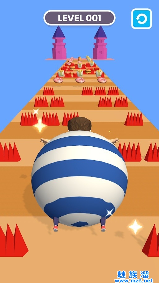 滚动的胖子,游戏玩法新颖趣味十足,在这里你需要带着你的脂肪滚动起来,利用胖子的优势朝着终点滚动,在中途有着非常多的尖刺,玩家需要小心的应对,还有着超多的食物等待你的收集,玩家需要食用这些食物不断的增肥,直到到达终点,非常的有意思,喜欢的玩家快来下载滚动的胖子吧!