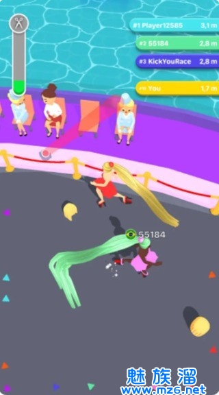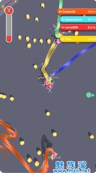 3、收集碎片,让头发不断增长,有点像贪吃蛇的玩法,碰到对手就会被剪掉长发哦