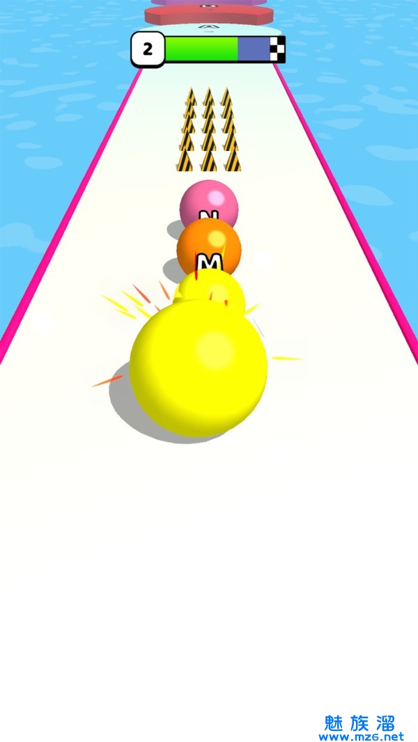 1、远离障碍物,吞食其他的同阶球球来让自己变得更加强大! 以更优异的成绩到达终点吧!