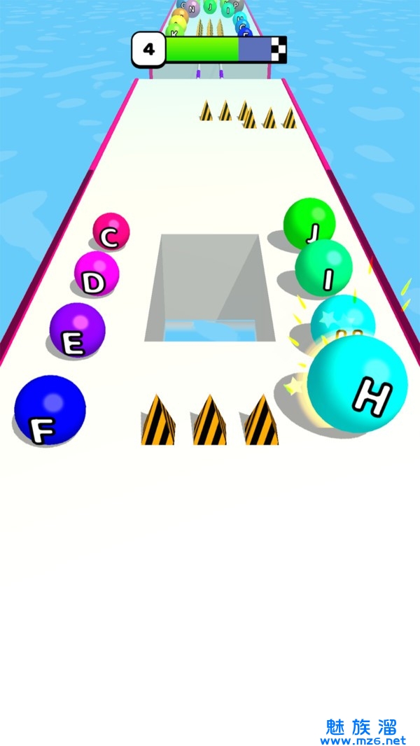 2、吃掉沿路的小球球,让你的球球变大变胖变强,可以摧毁游戏中的一切障碍