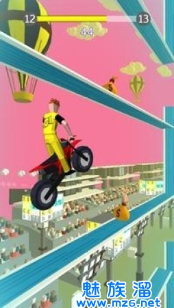 1.天上有很多坡道,你必须在上面放人力车,以自由式的方式做这些危险的特技;