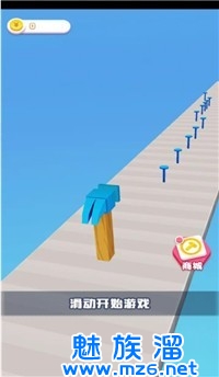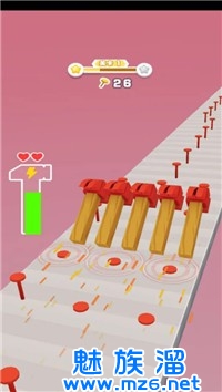 2、通过跟随节奏来完成一个个的闯关,不断的前进来将更多的钉子钉在木板上来获取分数