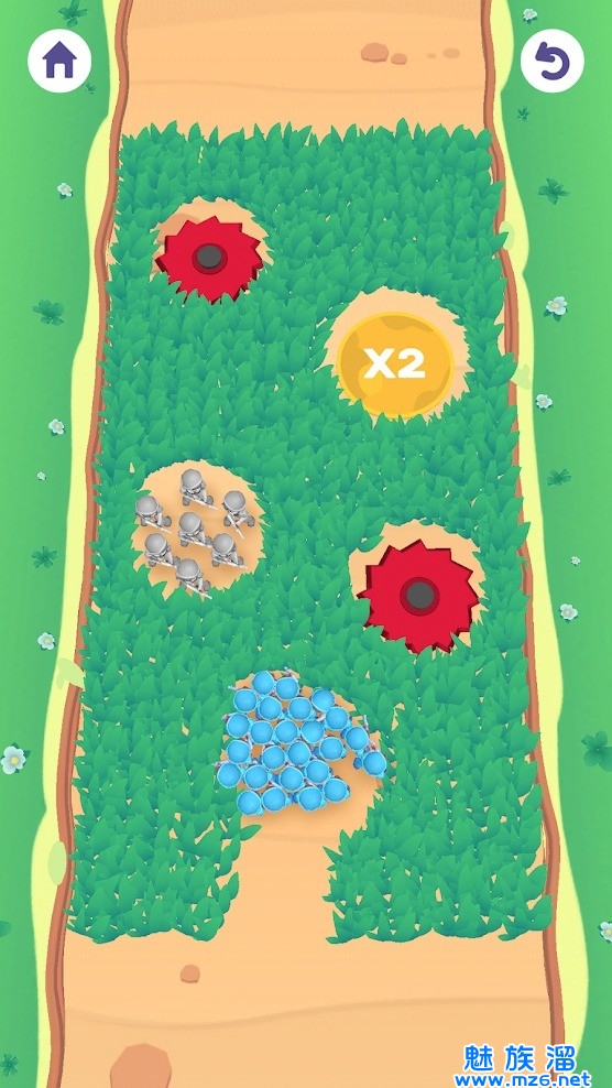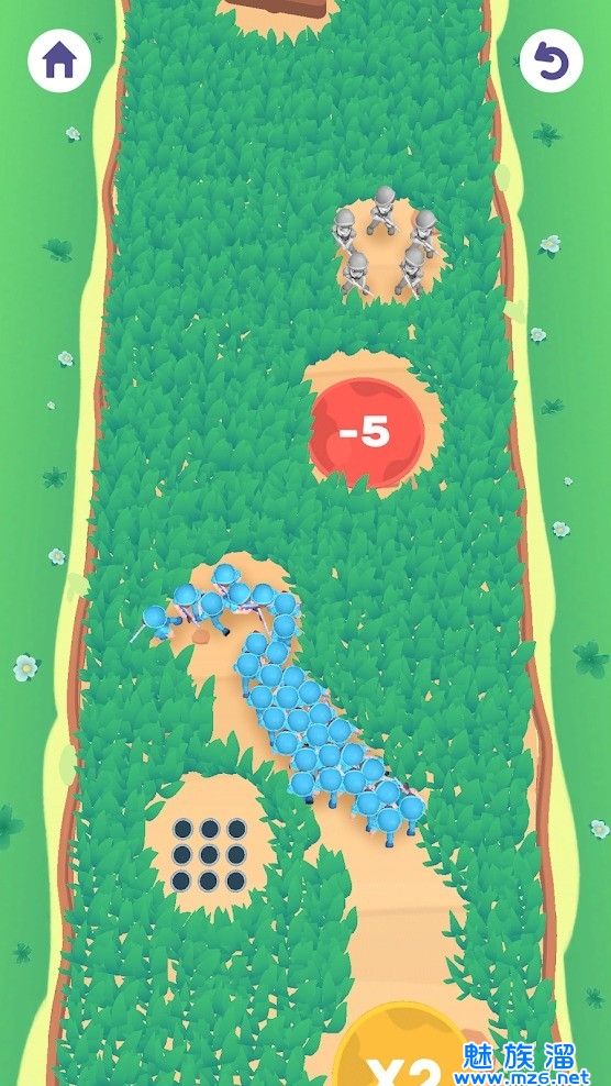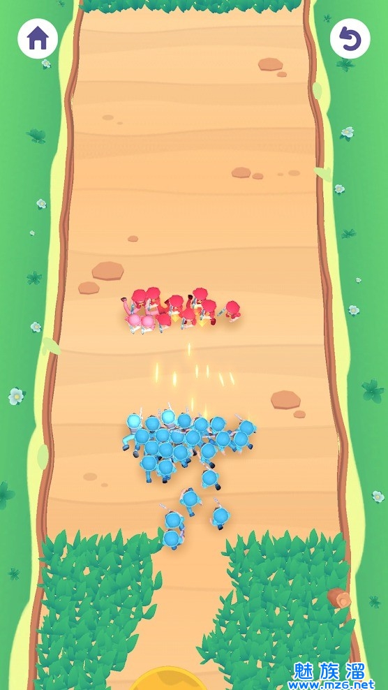 3、滑动屏幕,割掉阻挡己方军队的草丛,与敌方军队战斗,能够到达终点即可通关;