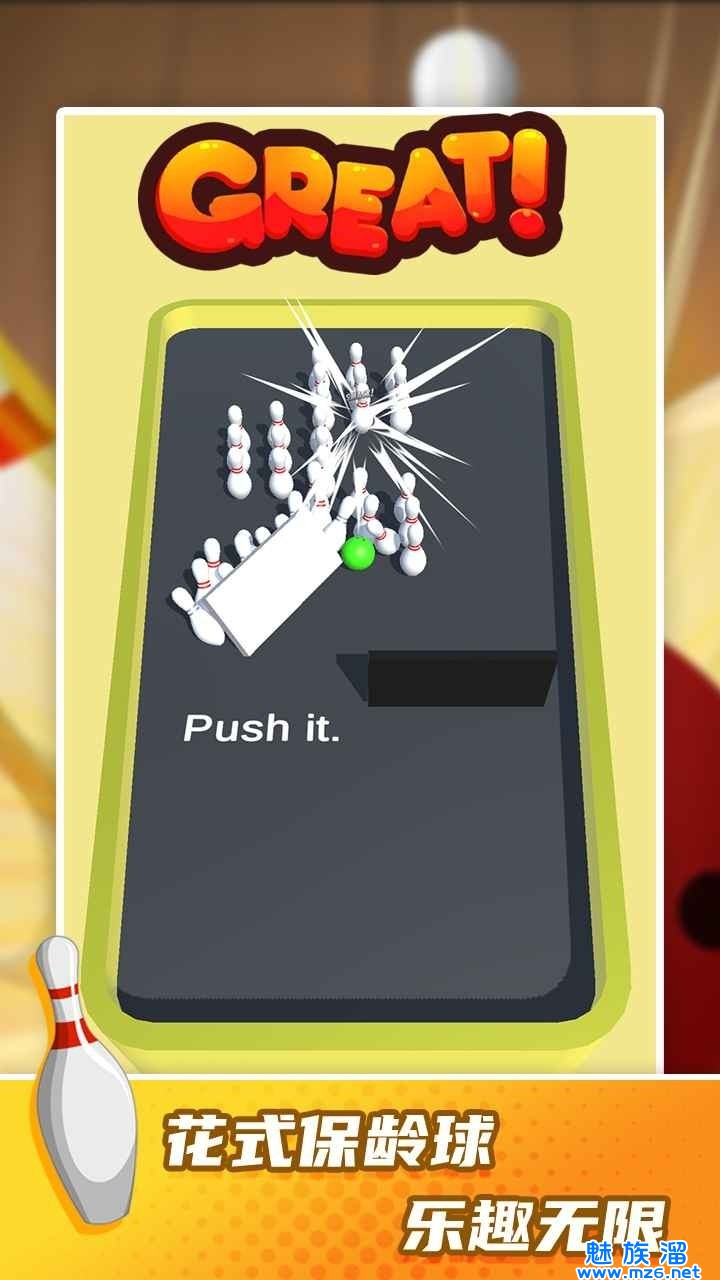 1.游戏非常有趣。游戏的画面和物理效果和真人差不多。你需要控制球的方向和力量。整个游戏设置了真实的保龄球环境。