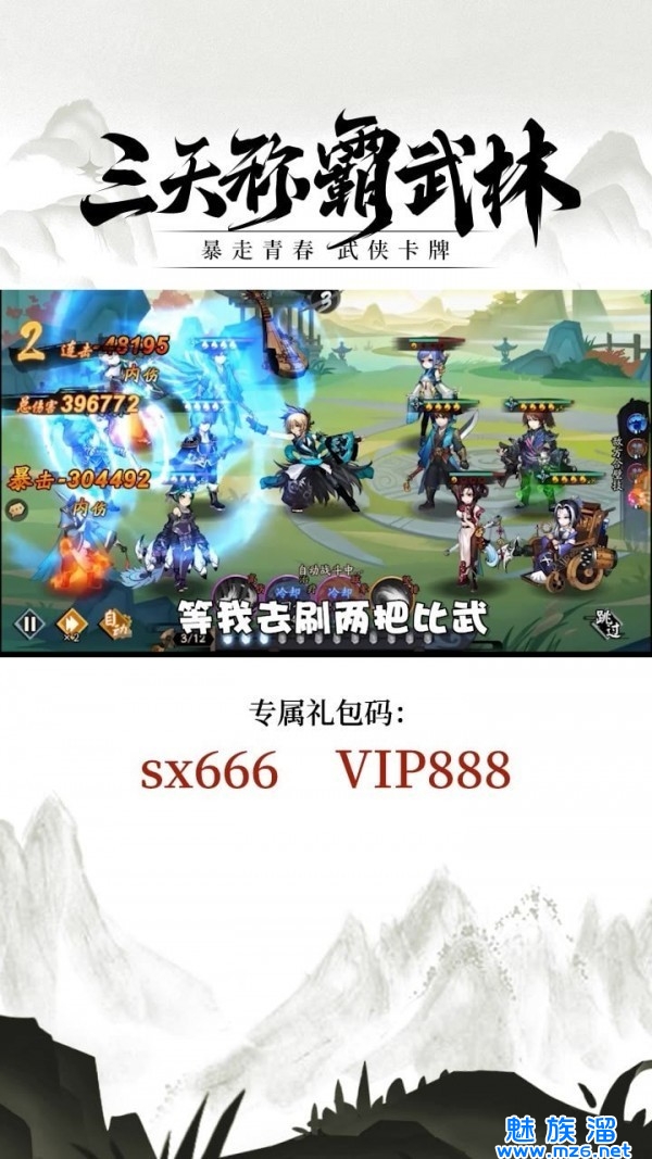 2、武林名将阵容随你搭配,开局十抽3天获得武林至尊,输出加成200%