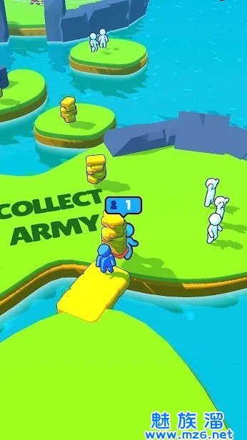 游戏开局,我们可以控制着这个角色不断的拾取石块来搭建桥面,能将白色的小人渲染成自己的颜色;