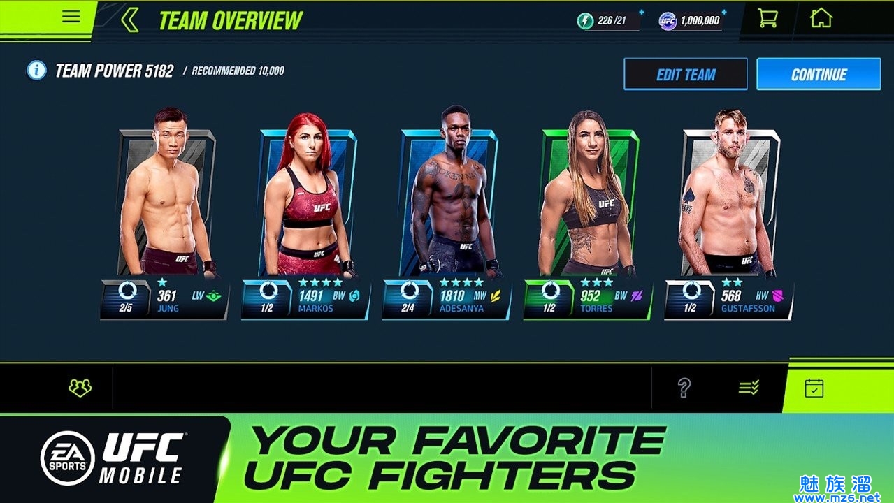 1、收集和定制您最喜欢的五个体重级别的 UFC 成员,打造终极 UFC 格斗明星。