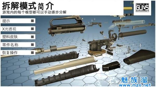 枪支世界枪支拆卸简单的枪支拆卸的休闲游戏,其中不同的模拟的环境中将会有不同型号包括各种中类的枪支拆分的任务,你可以从每一个零件认识到枪支射击的原理野人可以全面的了解更多的中枪支的知识帮助自己的完成更加完美的射击任务,也能在现实中让你真实的了解所有枪支的组成呀,下载枪支世界枪支拆卸吧!
